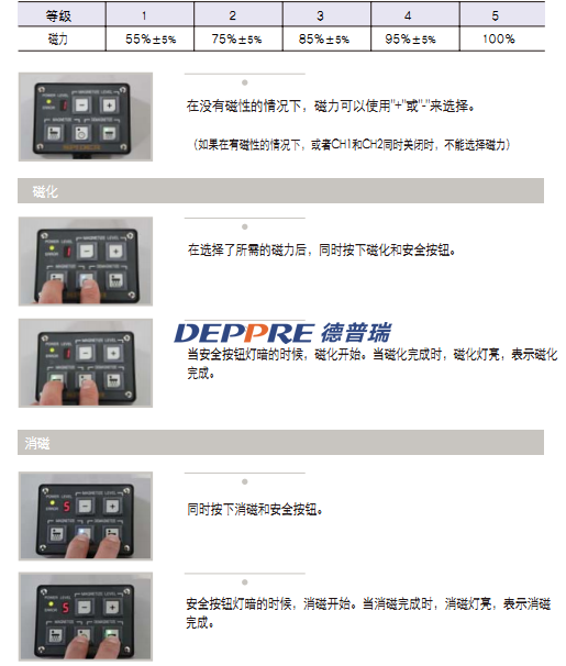 磁化和消磁可在中間分開的通道1和通道2,獨立進行。每個通道可選擇不同的磁力,分開使用: